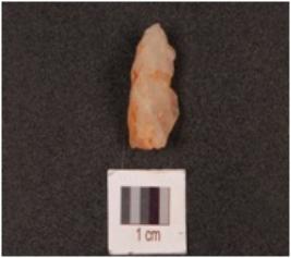 | Description / विवरण | A quartz flake with flake scars and use wear on edges. |