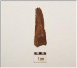 | Description / विवरण | Blade made on end struck chert, bulb on the ventral side ridge on the dorsal side, use wear marks along the cutting edges, |