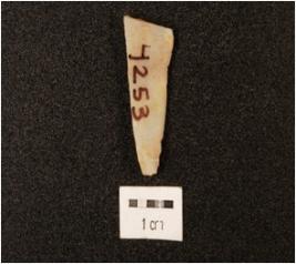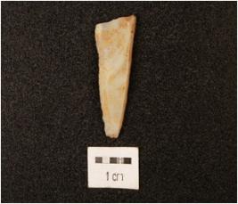 | Description / विवरण | A knife shaped chalcedony blade, ridge on dorsal surface, use wear edges, flat ventral. |