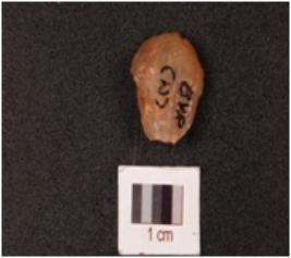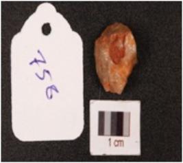 | Description / विवरण | A quartz flake with cortex intact on one side. |