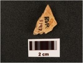 | Description / विवरण | Flake made on with chert pinted at distal end, and prepared platform on proximal end. Bulb of percussion present on the ventral side. |