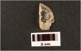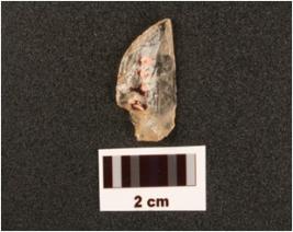 | Description / विवरण | Fragment of blade made on with crystal, with one blade scar and one flake scar, pointed at distal end and prepared platform at proximal end. Bulb of percussion present on the ventral side. |