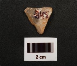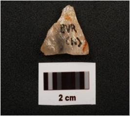 | Description / विवरण | A scraper with flake scars on dorsal side, use wear marks on working edge and smooth surface. |