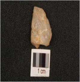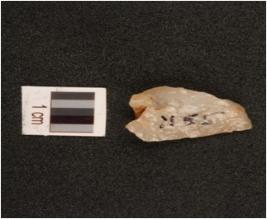 | Description / विवरण | Quartz flake, irregular shape, one pointed end, flat surface. |