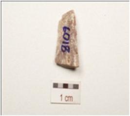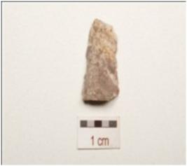 | Description / विवरण | Fragment of chert blade with mid ridge on dorsal, triangular in section, use wear marks on cutting edge and broken along both ends, |