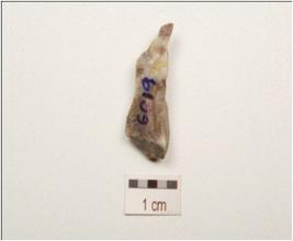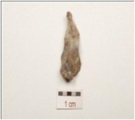 | Description / विवरण | Blade made on chalcedony with prominent single on dorsal, triangular in section, use wear marks on cutting edge and pointed towards distal end, |
