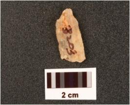 | Description / विवरण | Fragment of blade made by crystal, prepared platform on proximal end, diffused bulb on ventral side, pointed at distal end. |