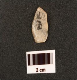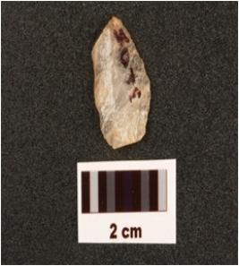 | Description / विवरण | Blade made on with crystal, prepared platform proximely, use wear marks on the surface, with pointed at distal end, diffused bulb on the ventral side. |