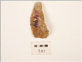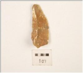 | Description / विवरण | Scraper made by chert, flake scars and cortex on the surface, platform on the proximal end partly retouching on the cutting edges. |