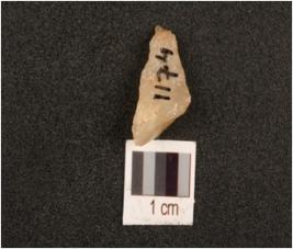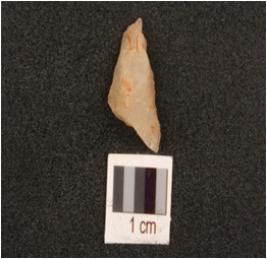 | Description / विवरण | Quartz flake, triangular in shape, two pointed ends. |