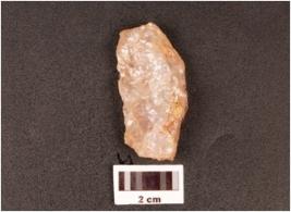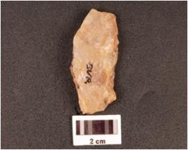 | Description / विवरण | A concave scraper, made on a flake, irregular flake scars, rough surface. |
