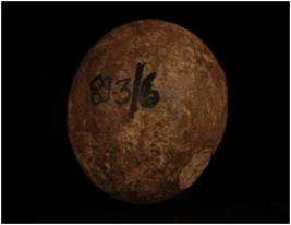| Description / विवरण | Hand made terracotta ball of grey fabric. |
