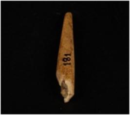 | Description / विवरण | A fragment of a bone point, with tapering end and broken tip, smooth surface and circular section. |