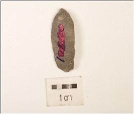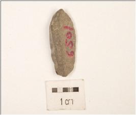 | Description / विवरण | Blade made on chert, flake scars on surface, negative bulb on the ventral side, prepared platform on the proximal end and distal end sharp, use wear marks on the cutting edges. |