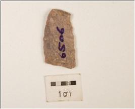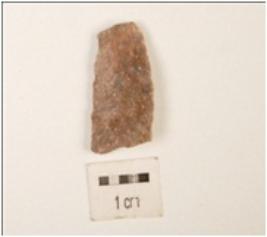 | Description / विवरण | Chert blade, flake scars on the surface, prepared platform on the proximal end, use wear marks on the cutting edges. |
