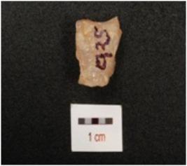 | Description / विवरण | A scraper with flake scars on dorsal, diffused bulb on ventral side, use wear marks on working edge and smooth surface. |
