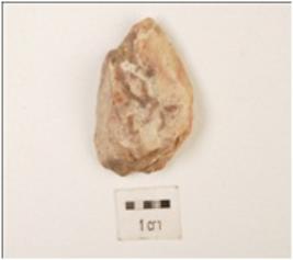 | Description / विवरण | Scraper made on chert, flake scars on the surface, partly retouching on the cutting edges. |