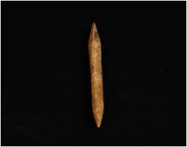 | Description / विवरण | A bone point with pointed ends, one end is broken and other end is intact, ridge along one end and polished surface. |