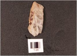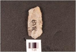 | Description / विवरण | A quartz flake, visible cortex on dorsal side, parallel flake scars, prepared platform, diffused bulb on ventral surface. |