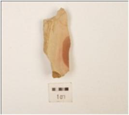 | Description / विवरण | Chert flake, flake scars and cortex on surface, use wear marks on cutting edges. |