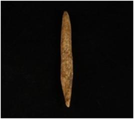 | Description / विवरण | A bone point with pointed ends, one end is broken and other end is intact, ridge along one end and polished surface. |