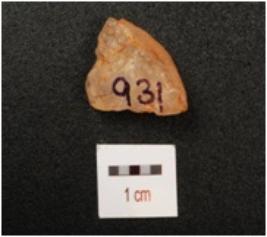 | Description / विवरण | A scraper made of quartz stone, cortex intact, diffused bulb on vantral side, flake scars on dorsal and use wear marks on working edge. |