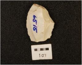 | Description / विवरण | Chert scraper, flake scars on the surface, prepared platform on the proximal end,partly retouching on the cutting edges. |