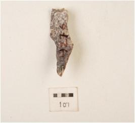 | Description / विवरण | A knife shaped blade made on chert, ridge on dorsal surface, use wear edges, pointed tip. |