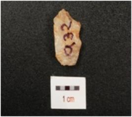 | Description / विवरण | A scraper with prominent bulb on ventral, use wear marks on working edge, flake scars on dorsal and smooth surface. |