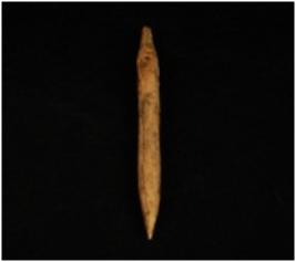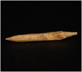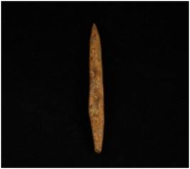 | Description / विवरण | A bone point with pointed ends, one end is broken and other end is intact, ridge along one end and polished surface. |