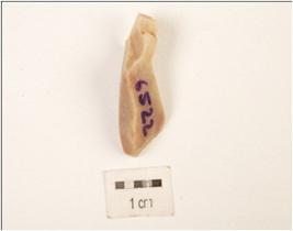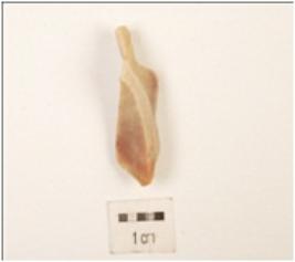 | Description / विवरण | Chert flake, flake scars on the surface, sharp edges. |