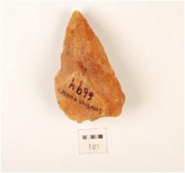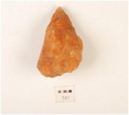 | Description / विवरण | Core made on quartz, flake marks on surface, irregular edges, uneven in shape. |