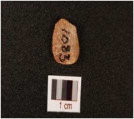 | Description / विवरण | A quartz flake with cortex intact on one side. |