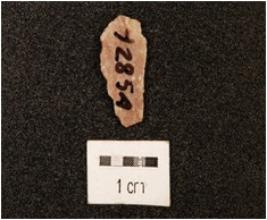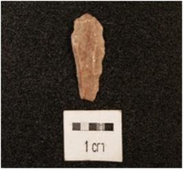 | Description / विवरण | A parallel sided blade, made on chert, ridge on dorsal surface, use wear edges, broken ends. |