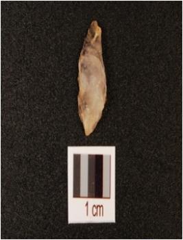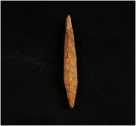 | Description / विवरण | A bone point with pointed ends, one end is broken and other end is intact, ridge along both the ends and polished surface. |