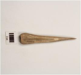 | Description / विवरण | A bone point, pointed from one end other end broad and thick, circular in section, a groove on other side, polished surface. |