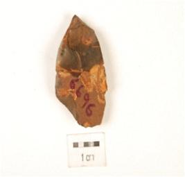 | Description / विवरण | Flake made on chert, irregular edges, diffused bulb, flake marks on dorsal surface. |