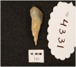 | Description / विवरण | A knife shaped chalcedony blade with use wear edges, single ridged, pointed tip. |