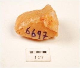 | Description / विवरण | Flake made on quartz, flake marks on surface, irregular edges. |