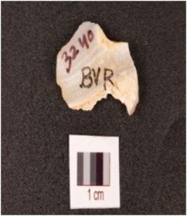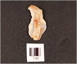 | Description / विवरण | A covcave scraper, made on flake, parallel flake scars on dorsal surface, visible cortex on dorsal side prominent bulb on ventral surface. |