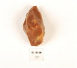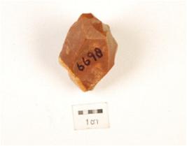 | Description / विवरण | Core made on chert, flake marks on surface, uneven in shape. |