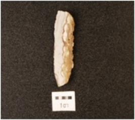 | Description / विवरण | A triangular shaped flake made on agate, rough surface, irregular edges, flake scars visible on the surface. |