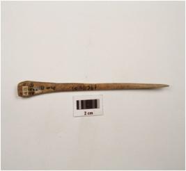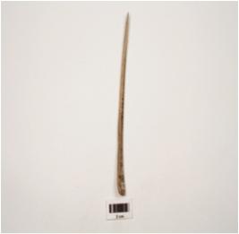 | Description / विवरण | A bone point with tapered on one end, pointed one end, other end flat and broad, rectangular in section from broad end, slightly curved, well polished surface. |