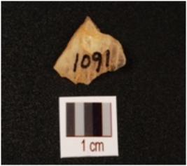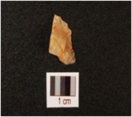 | Description / विवरण | A quartz flake with two flake scars on the surface. |