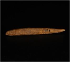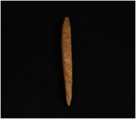 | Description / विवरण | A bone point with pointed ends, one end is broken and other end is intact, ridge along both the ends and polished surface. |