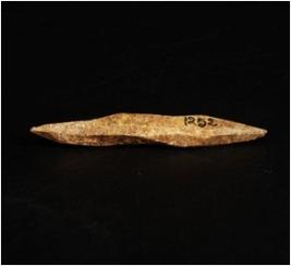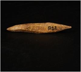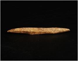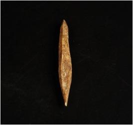 | Description / विवरण | A bone point with pointed ends, both the tips intact, ridge along both the ends and polished surface. |