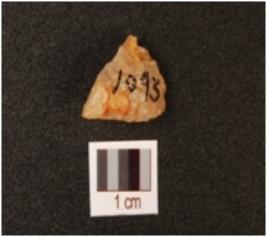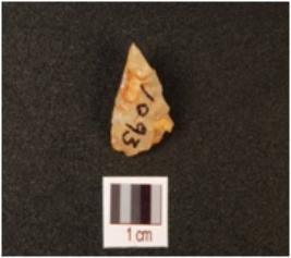 | Description / विवरण | A quartz flake with two flake scars on the surface. |