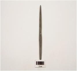 | Description / विवरण | A himalayan soft stone point with pointed one end, other end slightly damaged, circular in section, smooth surface. |