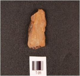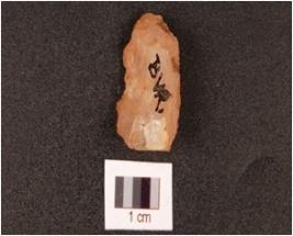 | Description / विवरण | Flake of a quartz core, prepared platform, parallel flake scars, single ridged, uneven surface, direct pressure technique. |