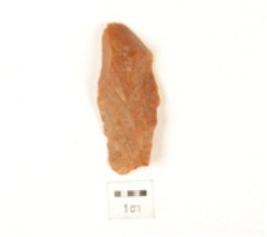 | Description / विवरण | Blade made on quartzite stone, ridge and flake marks on dorsal surface, irregular edges, diffused bulb. |